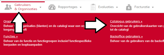 Ga in het hoofdmenu via Gebruikers & Organisaties naar Catalogus gebruikers