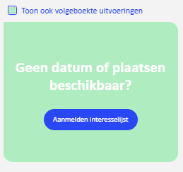 Als je voor een gebruiker hier een uitvoering selecteert en vervolgens onder Acties op ‘opslaan’ klikt kun je de betreffende gebruiker van de interesselijst plaatsen op deze uitvoering: