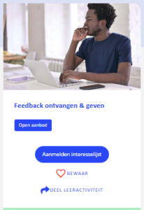 Indien de optie in de systeeminstellingen aanstaat, kunnen gebruikers zichzelf in het leerportaal op 2 plekken binnen de leeractiviteit op de interesselijst voor een leeractiviteit inschrijven.