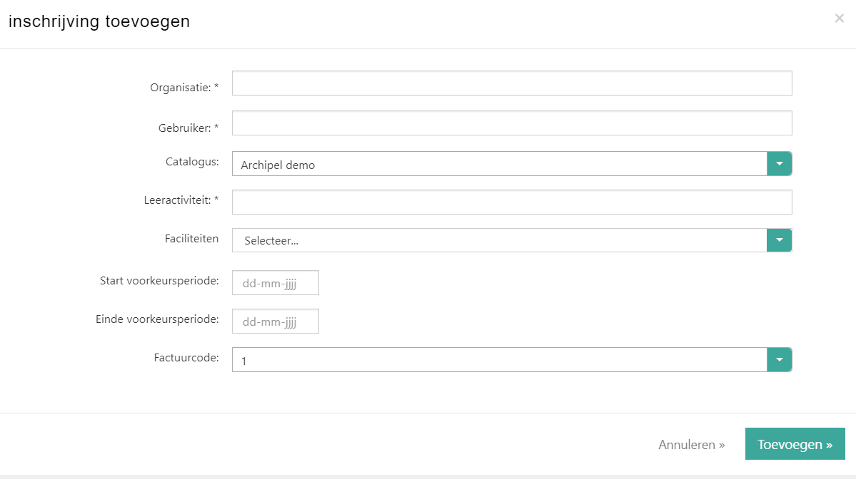 - Inschrijving toevoegen