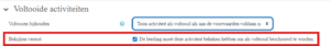 – Gebruikers kunnen de activiteit manueel als voltooid markeren: Dit houdt in dat cursisten bij de activiteit zelf een vinkje kunnen zetten waarmee ze de activiteit zelf kunnen voltooien.