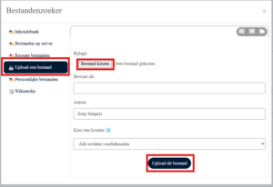 – Je kunt het bestand ook toevoegen door op de knop ‘voeg toe’ te klikken en in de pop-up op ‘upload een bestand’ te klikken: