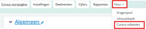 Ga eerst via het tabje “meer” rechtsboven in de menubalk, naar ‘cursus voltooien’: