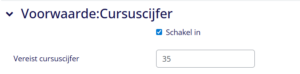 Indien je een minimum cijfer had ingesteld voor de opdracht, vul dan onder ‘Voorwaarde:Cursuscijfer’ dit minimum cijfer hier nogmaals in, nadat je de optie hebt ingeschakeld: