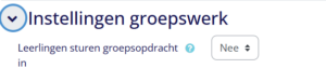 Standaard is ingesteld dat cursisten als groep de opdracht inleveren. Wil je dat cursisten de opdracht individueel inleveren, pas dan onder ‘instellingen groepswerk’ de instellingen ‘leerlingen sturen groepsopdracht in’ aan naar ‘Nee’: