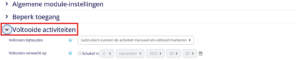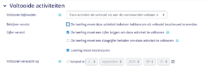 -> Onder kopje ‘’voltooien activiteit’’ kun je voltooiings instellingen wijzingen van de leeractiviteit.