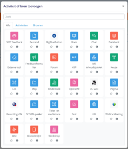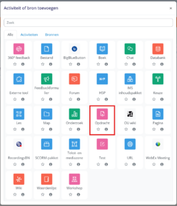 Uit de lijst met activiteiten, selecteer je nu de opdracht en voeg je deze toe: