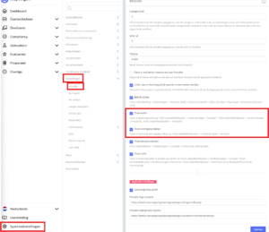 Als een vakje bij een van de optie is aangevinkt, dan wordt de betreffende optie getoond in het leerportaal. Als een vakje wordt uitgevinkt, dan zal de betreffende optie niet meer worden getoond in het portaal.