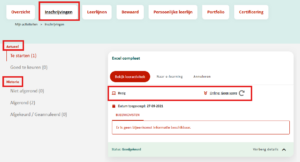 Je kunt vervolgens doorklikken naar de online leeromgeving door op de knop ‘beheer e-learning’ op de tab ‘eigenschappen’ te klikken: