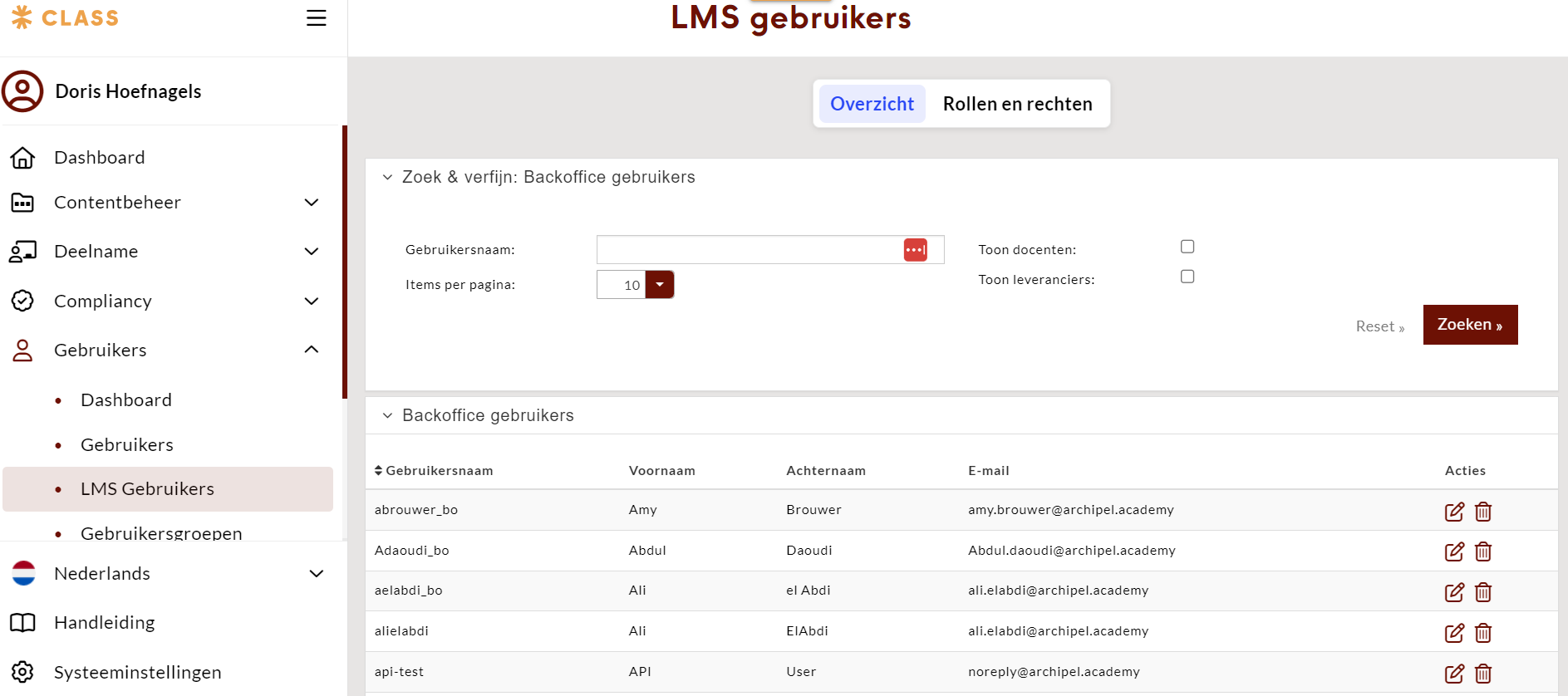 Gebruikers -> LMS Gebruikers