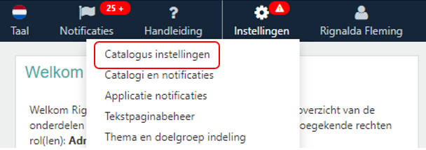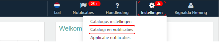 Nadat je bent ingelogd in de backoffice van Class klik je op ‘Instellingen > Catalogi en notificaties’.