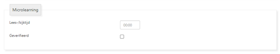 Als de leeractiviteit is aangemerkt als ‘Microlearning’, dan kun je na aanmaak hiervan ook aangeven hoeveel tijd de deelnemer kwijt is aan het kijken van de video of het lezen van het artikel. Dit kun je invullen op het ‘Eigenschappen’ tab van de leeractiviteit aan de rechterzijde.