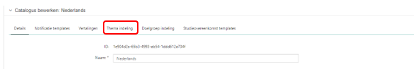 Om een Thema te bewerken, klikje op de naam van het Thema onder ‘Catalogus thema’s’