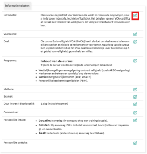 Het toevoegen van een informatieve tekst doe je d.m.v. het bewerken-icoontje achter het onderwerp: