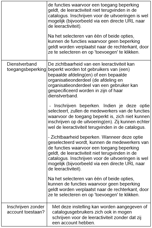 - Publiceren in catalogi: Hier kun je de catalogus of catalogi selecteren waarin je de leeractiviteit wilt publiceren.