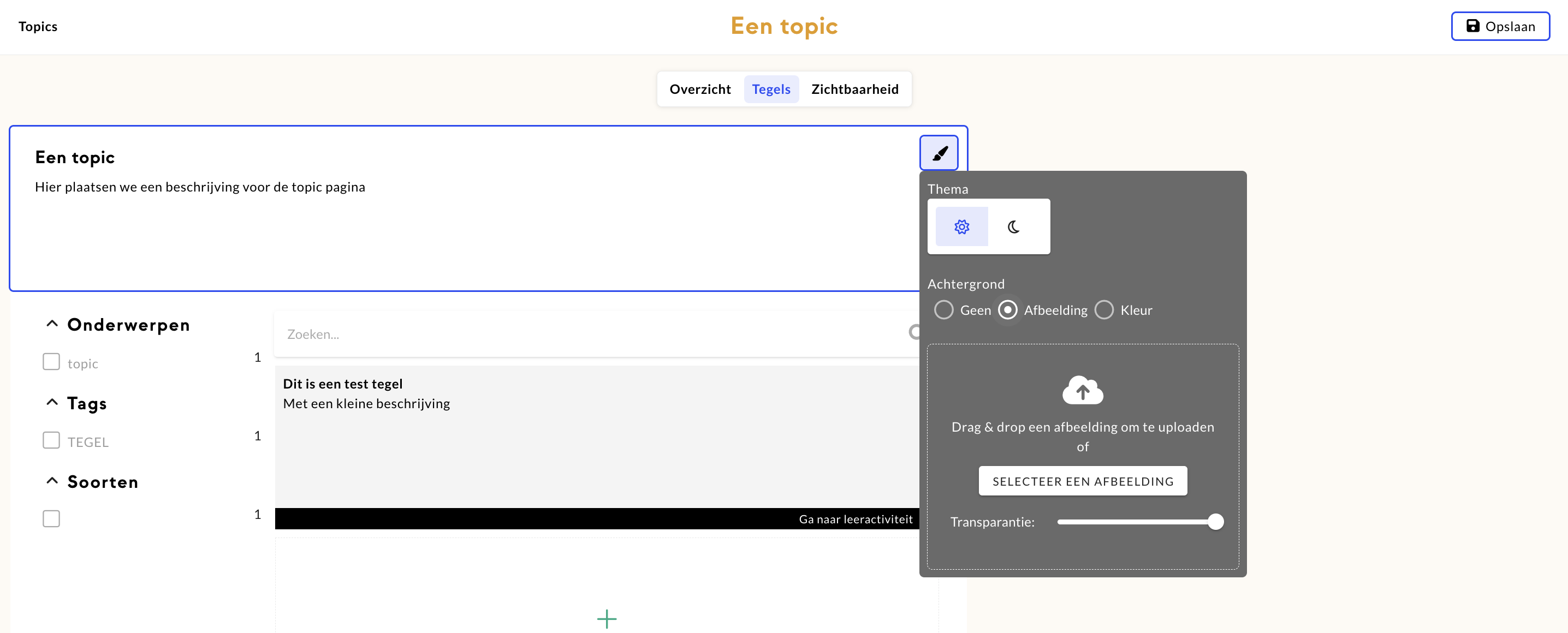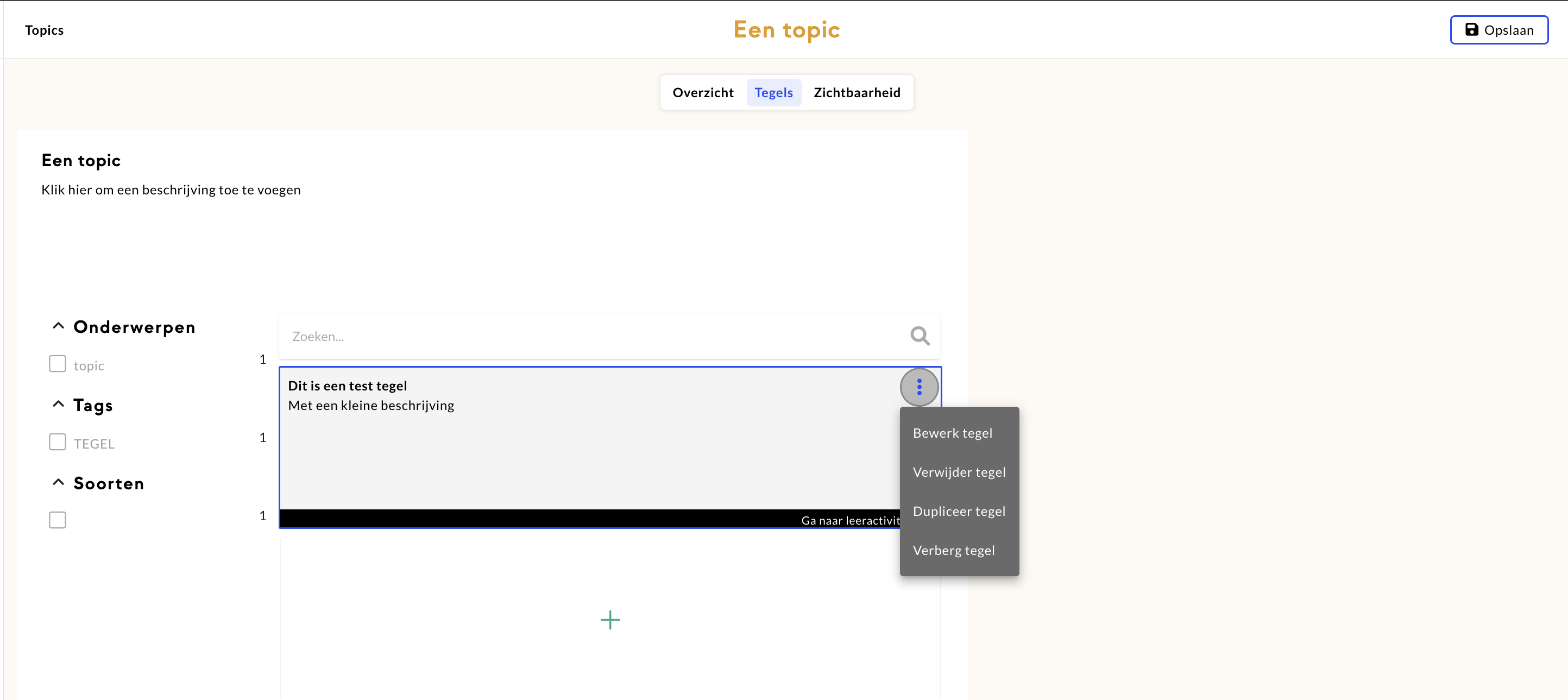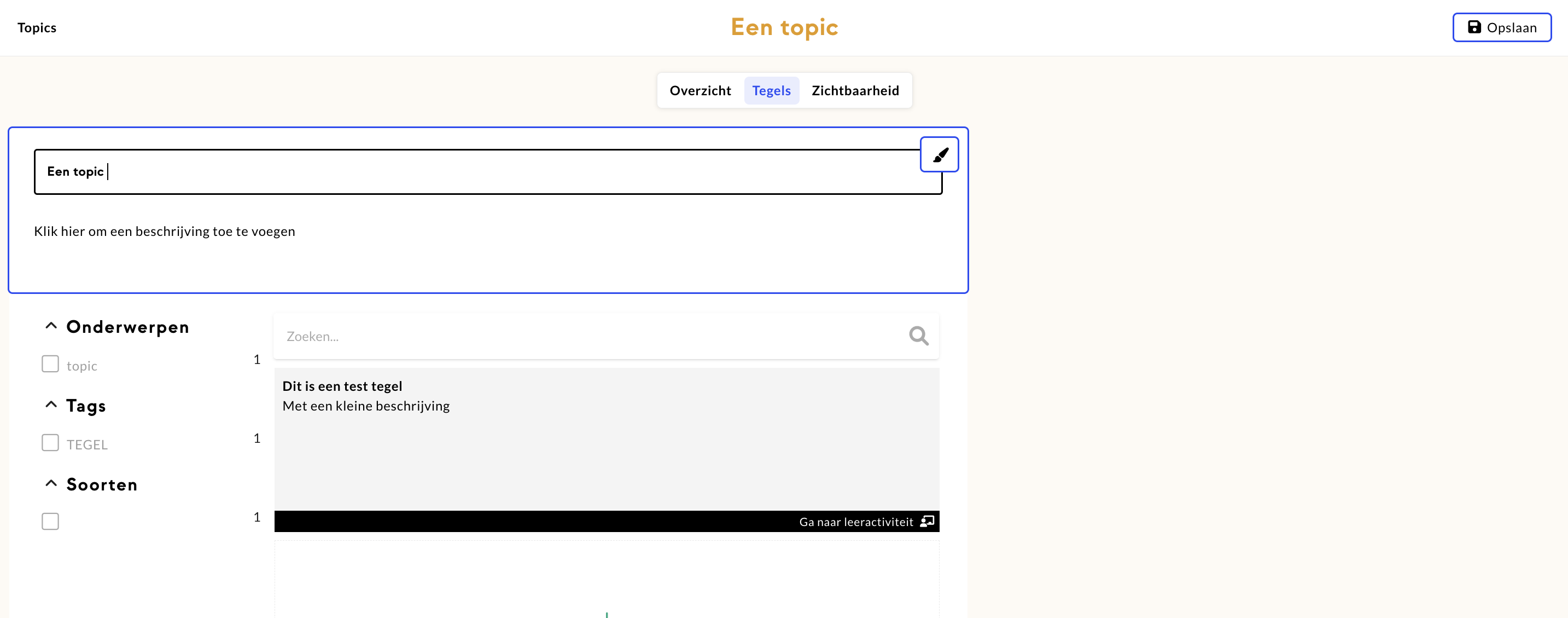 Navigeer naar ‘Tegels’ om de instellingen van de topic pagina toe te voegen.
