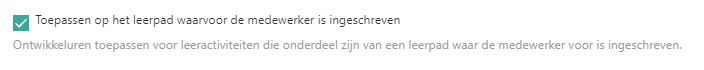 Als organisatie heb je de keuze of je welof niet naar ontwikkeluren wilt vragen voor leeractiviteiten die onderdeel zijn van een leerpad waar de medewerker voor is ingeschreven.