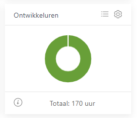 Op het dashboard vind je een widget Ontwikkeluren. Deze widget laat twee delen zien: de verwachte nog te besteden ontwikkeluren en de bestede ontwikkeluren.