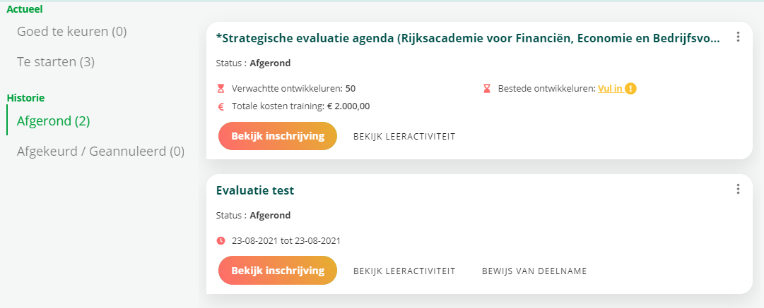 Inschrijven op nieuwe leeractiviteiten die zijn toegevoegd maar nog niet zijn goedgekeurd via de module ‘gewijzigd opleidingsaanbod’, is niet mogelijk.