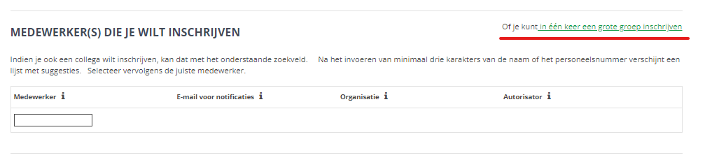 In deze sectie staat tevens onderstaande sectie de link ‘Of je kunt in een keer een grote groep inschrijven’.