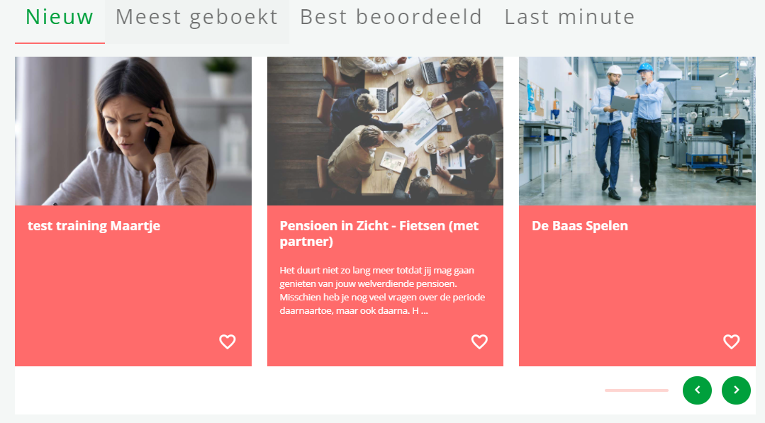 Als deze instelling aan staat, wordt op de homepage het blok ‘Nieuw/Meest geboekt/Best beoordeeld/Last minute’ getoond. Je moet ook selecteren welke van de tabs je aan wilt zetten.