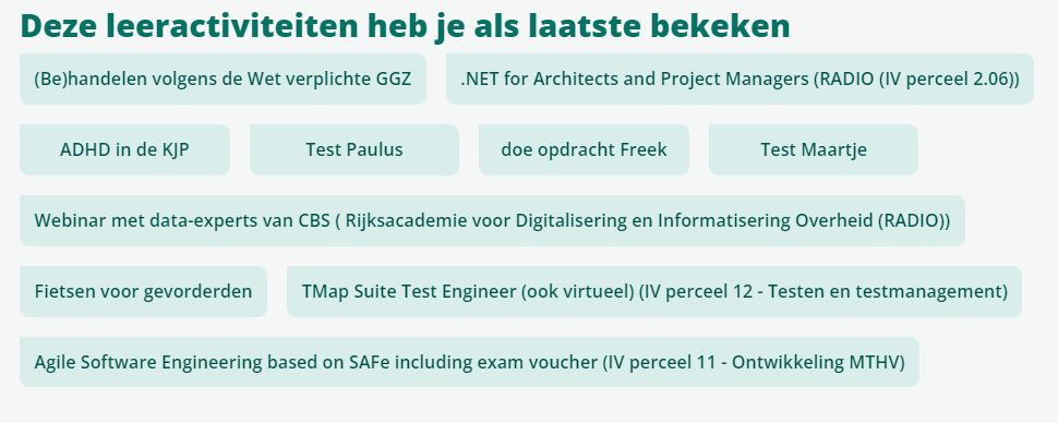 Als deze instelling aan staat, wordt op de homepage het blok ‘Deze leeractiviteiten heb je als laatste bekeken’ getoond.