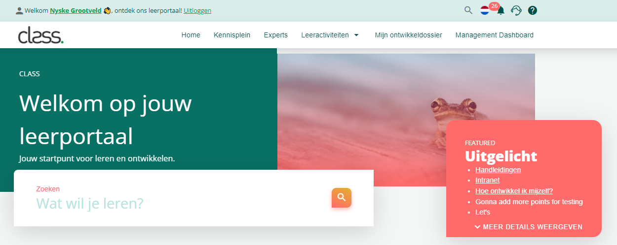Hier kan je een afbeelding voor de banner uploaden. De banner is de afbeelding op de homepage rechts van het vlak ‘Welkom op jouw leerportaal’.
