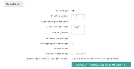 Ook zijn de punten die behaald zijn door het volgen van een leeractiviteit zichtbaar in de resultaten van de inschrijving: