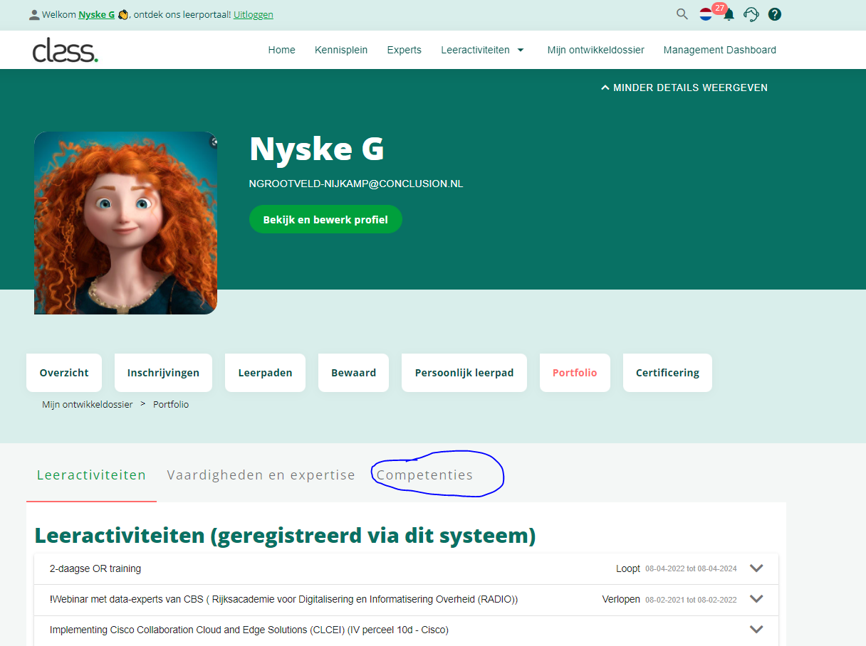 Toon competenties in portfolio