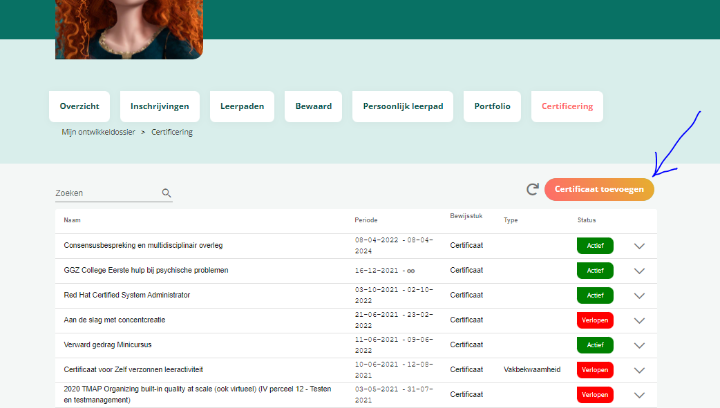 Certificaat toevoegen via mijn ontwikkeldossier