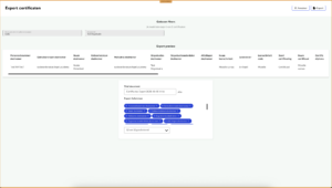 Bovenaan de pagina zie je de filters op basis waarvan je de export gaat maken. Deze keus heb je op het overzicht scherm gemaakt van de certificaten. Daaronder krijg je een preview van hoe jouw export na generatie eruit komt te zien.