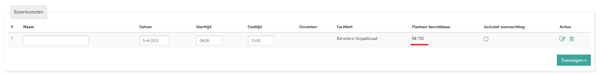 Als dit bepaald wordt op basis van locatiecapaciteit (nieuw in release Fedra), dan is overboeken het inschrijven van meer deelnemers dan de maximum capaciteit van de locatie toe laat.