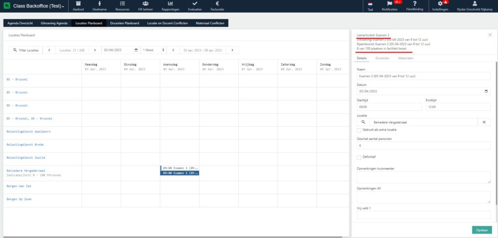 Je kunt de overboeking van locatie Belvedere accepteren. Als beheerder weet je immers dat dat jouw grote examenzaal is, waar je bewust meerdere uitvoeringen in plant.