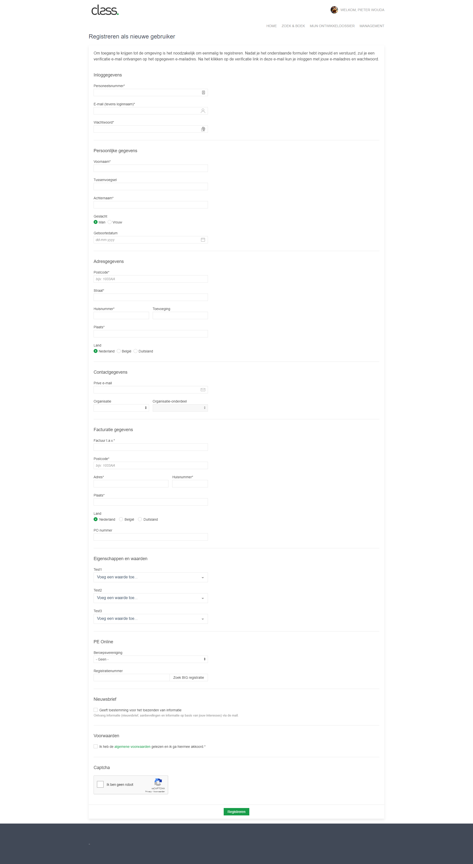 - De deelnemer vult alle gegevens in op het “Registreren als nieuwe gebruiker” formulier en klikt op “registeren”